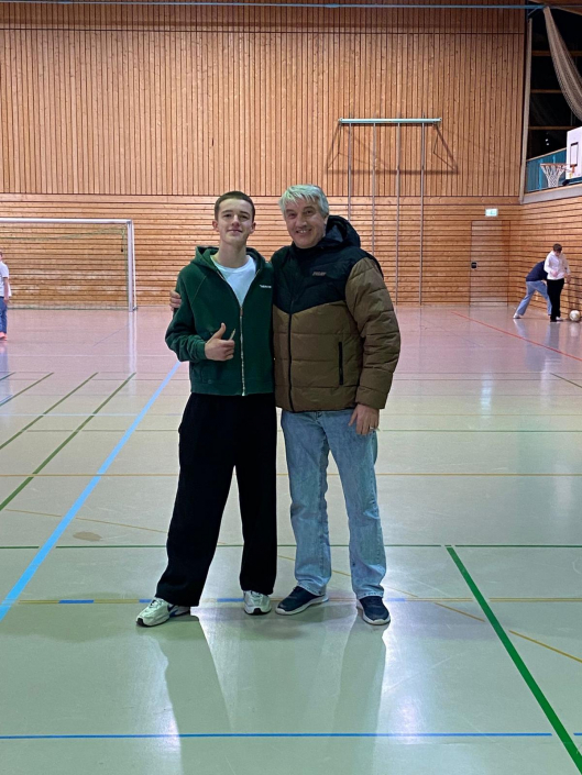 Jung und Alt spielten nun in gemeinsamen Mannschaften zusammen und es waren faire, spannende und auch torreiche Spiele zu sehen, bei denen die gut leitenden Schiedsrichter Philipp und Sandro keine großen Mühen hatten. Die unterschiedlichen Trikots stellte die TVH Fußballabteilung aus einem großen aufbewahrten Fundus der letzten Jahrzehnte. Toll war auch die gute Besucherzahl während des Turniers, die sich hauptsächlich auf der Tribüne aufhielt, da das Foyer der Halle, wegen eines technischen Defekts, leider den ganzen Tag über ungeheizt blieb.